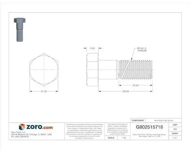 MIDWEST FASTENER 31147 Class 10.9, M14-1.50 Hex Head Cap Screw, Plain Steel,