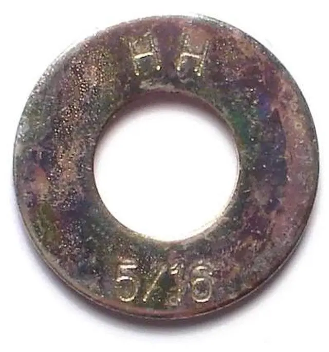 A flat washer is a thin, usually round, plate with a hole in the middle that is normally used to distribute the load of a threaded fastener. USS flat washers have a large, wider body. SAE flat washers are machined to a tighter specification and have a smaller outside diameter.
