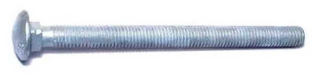 A carriage bolt has a domed or countersunk head, and the shank is topped by a short square section under the head. The square section grips into the part being fixed (typically wood), preventing the bolt from turning when the nut is tightened.