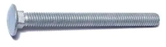 A carriage bolt has a domed or countersunk head, and the shank is topped by a short square section under the head. The square section grips into the part being fixed (typically wood), preventing the bolt from turning when the nut is tightened.