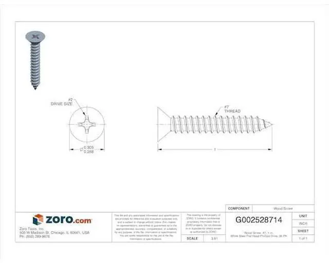 MIDWEST FASTENER 79366 Wood Screw, #7, 1 in, White Steel Flat Head Phillips
