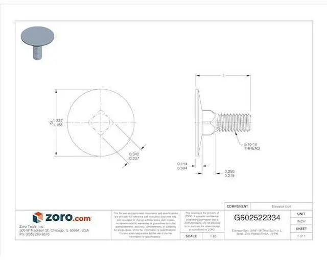 MIDWEST FASTENER 71305 Elevator Bolt, 5/16"-18 Thrd Sz, 1 in L, Steel, Zinc