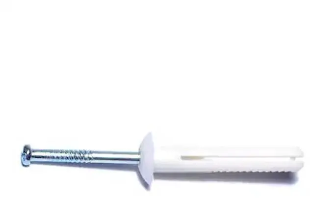 Also known as a hammer drive anchor, a drive anchor is an anchor with a nail-shaped pin enclosed in a sleeve. Once the pin is struck, the anchor expands into concrete, brick or block. These anchors are best suited for light duty fastening.