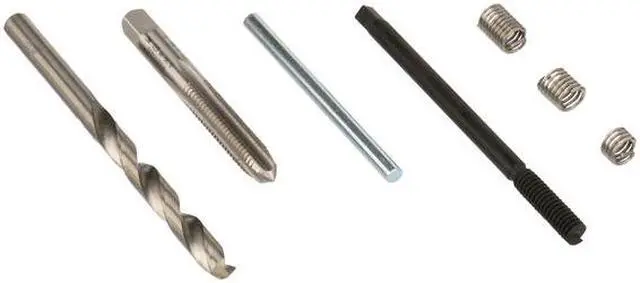 Thread Repair Kit, Insert Types Included Helical Inserts, Compatible Material Metal, Drill Bit Sizes Included 21/64 in, Finish Plain, Helical Insert Type Free-Running, Insert Length 5/16 in, 15/32 in, 5/8 in, Insert Material Stainless Steel, Material Grade/Class 18-8, Maximum Hole Diameter Not Applicable, Number of Inserts 36, Number of Pieces 40, Number of Sizes 3, System of Measurement Inch, Tang Style Tanged, Tap Sizes Included 5/16 In. -11, Thread Direction Right Hand, Thread Size 5/16 In. -18. This item has been restricted from sale in the following state (s): []