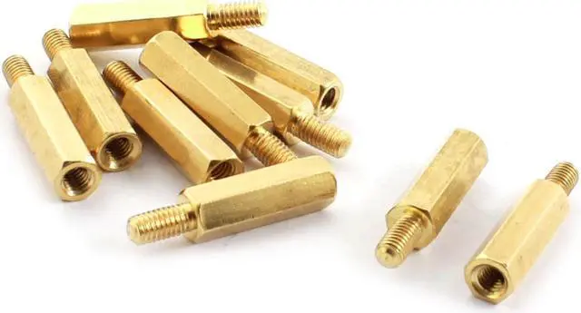 Unique Bargains 10pcs Male 5mm x M3 Female 15mm+5mm Brass Screw Standoff Spacer