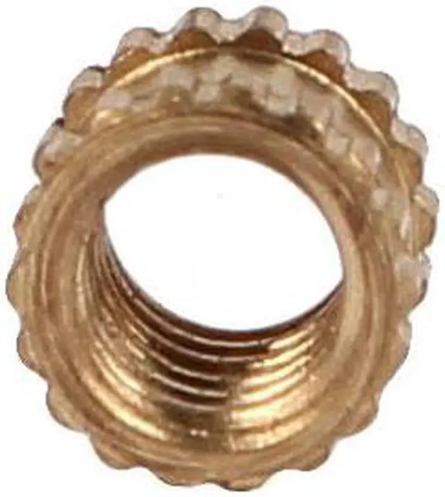 Made of bass material. Featured with heat resistance. Used on injection moulding for tightly fixing. No need to counterbore or countersink the boss hole because?the insert has guide pilot.