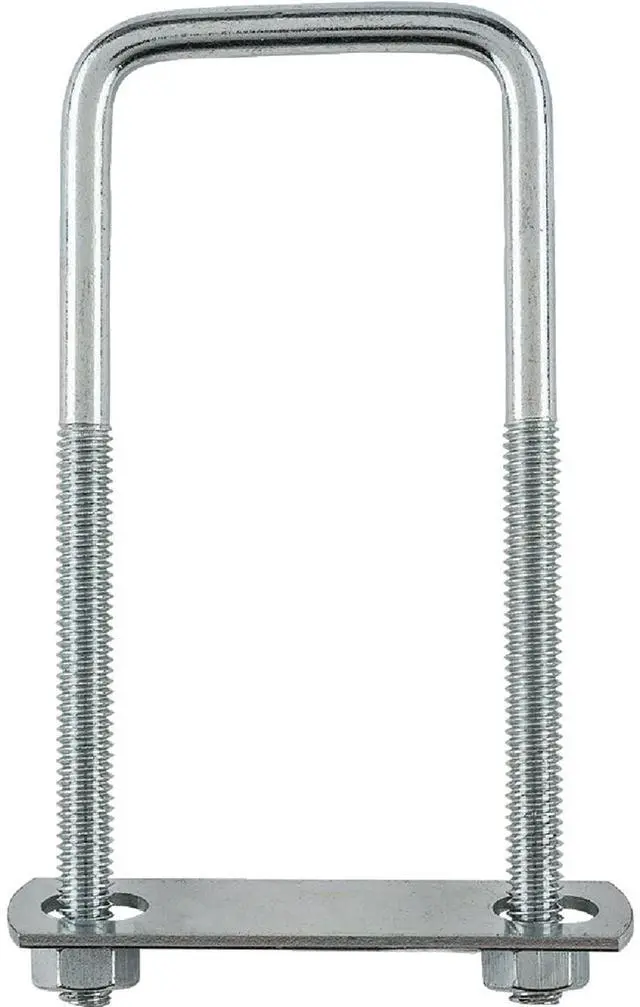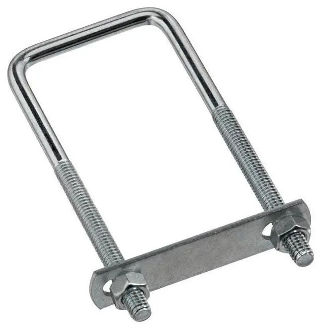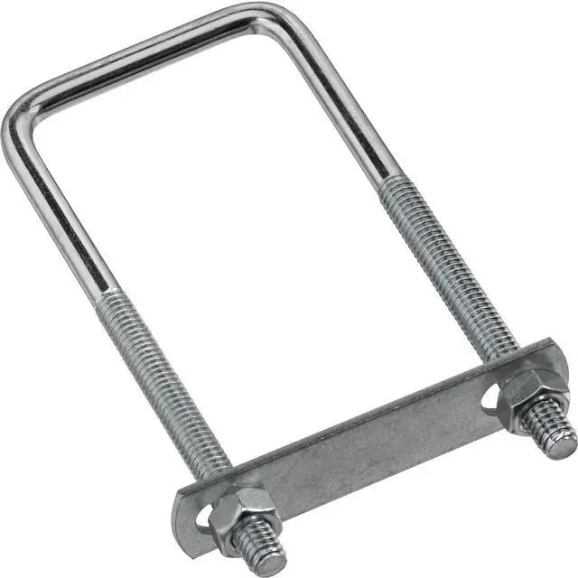 National catalog model No. 2192BC square U bolts, zinc plated. Designed for securing various products to rectangular wood and metal objects. Box pack with 2 hex nuts, assembled. Plate and hex nuts are included. Manufactured from steel wire with zinc finish.