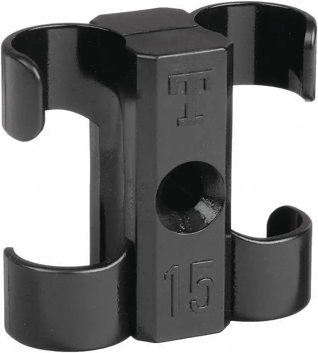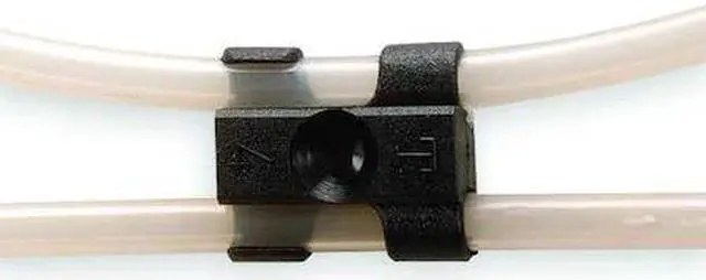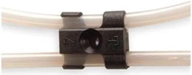 T-Clip Fastener, Color Black, For Maximum Outside Diameter 1/2 in, For Minimum Outside Diameter 3/8 in, For Number of Lines 2, For Tube Outside Diameter 3/8 in, 1/2 in, Includes Mounting Hardware Yes, Material Polyacetal, Mounting Hole Diameter 0.16 in, Number of Channels 2, Overall Height 0.56 in, Overall Length 1.09 in, Overall Width 1.21 in, Shape Rectangle with 360 Degrees Radius Circle, Maximum Operating Temperature 212 Degrees F, Minimum Operating Temperature -40 Degrees F. This item has been restricted from sale in the following state (s): []