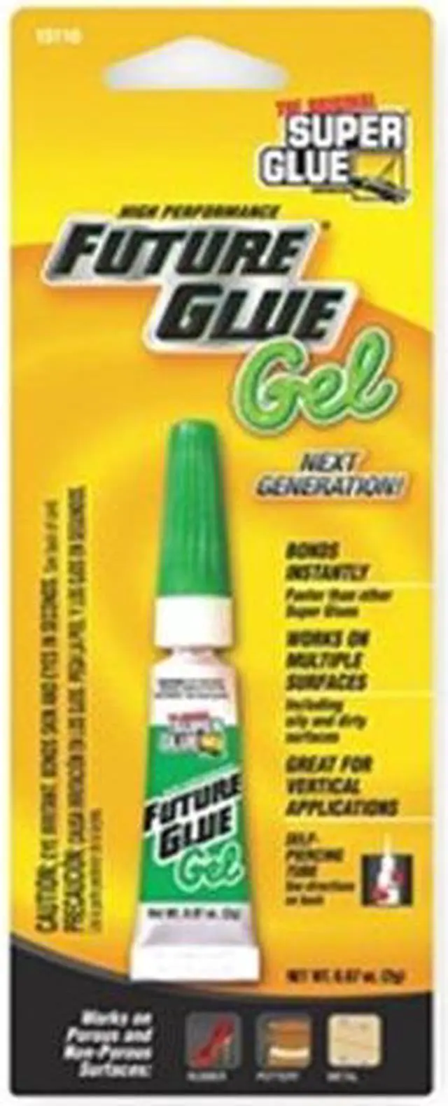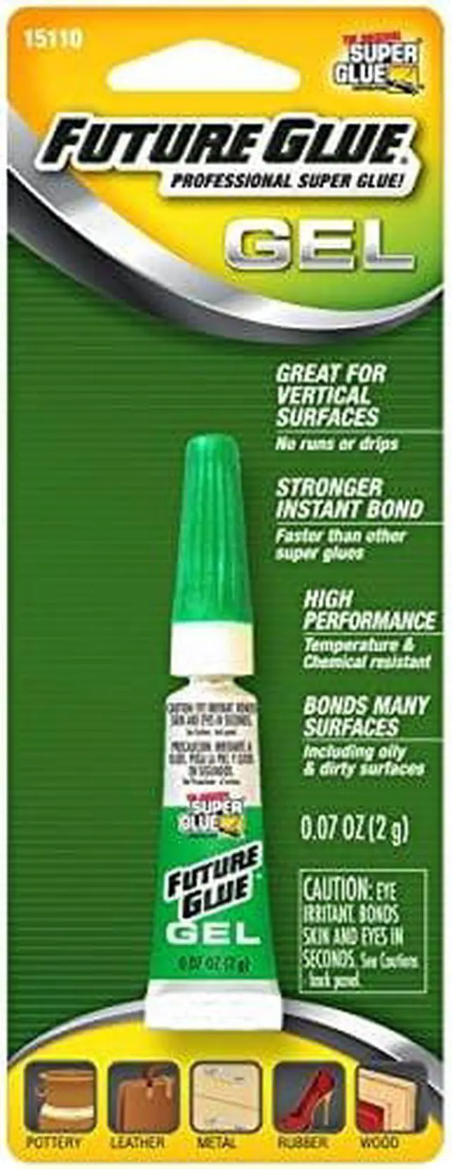 Instant Adhesive, Adhesive Color Clear, Container Size 0.07 fl oz, Container Type Tube, Cure Method Humidity, Maximum Viscosity 50, 000 cP, Minimum Viscosity 20, 000 cps, Series Future Glue, Built-in Dispenser Type Precision Tip, Features Chemical Resistant, For Porous and Non-Porous Materials, For Preassembled and Close-Fitting Parts, For Vertical Applications, Gap Filling, Medium Viscosity, Temperature Resistant