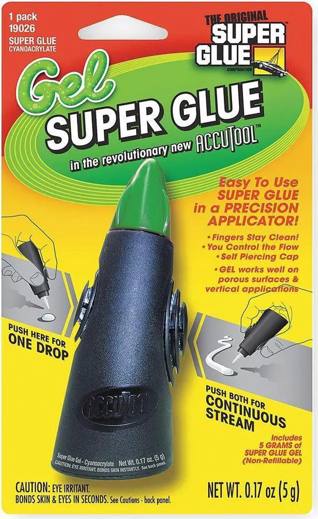 Instant Adhesive, Adhesive Color Clear, Container Size 0.17 fl oz, Container Type Tube, Cure Method Humidity, Maximum Viscosity 50, 000 cP, Minimum Viscosity 20, 000 cps, Series Accutool, Built-in Dispenser Type Dropper, Features No Drip or Run, Precision Tip, Materials Bonded Aluminum, Ceramic, Wood, Metal, Plastic, Rubber, Vinyl, Primary Applications General Purpose, Standards NA, Electrically Insulating No, Gap Fill 0.02 in, Impact Resistant No, Interior/Exterior Interior/Exterior, Low Odor No