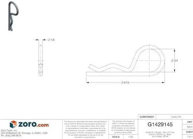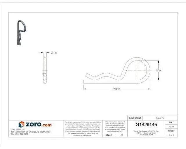 Cotter pins are often used with hitch pins and clevis pins to hold them securely in place. Here is some additional information about Zoro Select Cotter Pin.