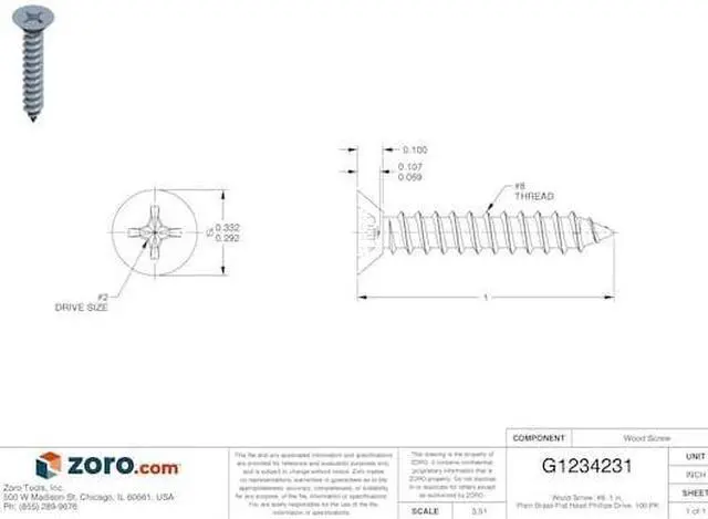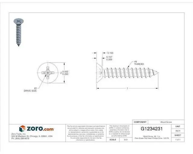 California Proposition 65: This product contains a chemical known to the State of California to cause birth defects or other reproductive harm. Wood Screw, Finish Plain, Material Brass, Drive Phillips, Screw Size #8, Fastener Length 1 in, Head Width 0.332 in, Head Height 0.1 in, Drive Size #2, Threads per Inch 13, Pack Size Small, Maximum Head Width 21/64 in, Minimum Head Width Not Applicable, Maximum Head Height 3/32 in, Minimum Head Height Not Applicable, System of Measurement Inch, Head Type Flat, Dimensional Standards ASME B 18.6. 1, Package Quantity 100. This item has been restricted from sale in the following state (s): []