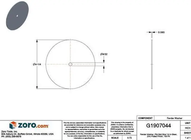 California Proposition 65: This product contains a chemical known to the State of California to cause birth defects or other reproductive harm. Large O. D. Oversized Washer, Flat Washer Type Oversized, Dimensional Standards ASME B 18.21. 1, Material Steel, Material Grade/Class Case Hardened, Finish Zinc-Plated, For Screw Size 1/4 in, Inside Diameter 0.285 in, Outside Diameter 1 1/32 in, Maximum Thickness 5/64 in, System of Measurement Inch, Minimum Thickness 3/64 in, Color Silver, Inside Diameter Tolerance 0, 275-0, 295, Made in North America Not Made in North America, Manufacturer Location Globally Sourced. This item has been restricted from sale in the following state (s): []