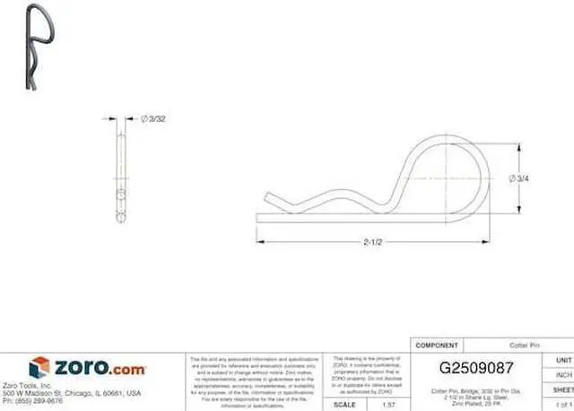 Cotter pins are also known as split pins. Take a look at the features for Zoro Select Cotter Pin. Length: 2-1/2", Material: Steel, Finish: zinc.. This item has been restricted from sale in the following state (s): []