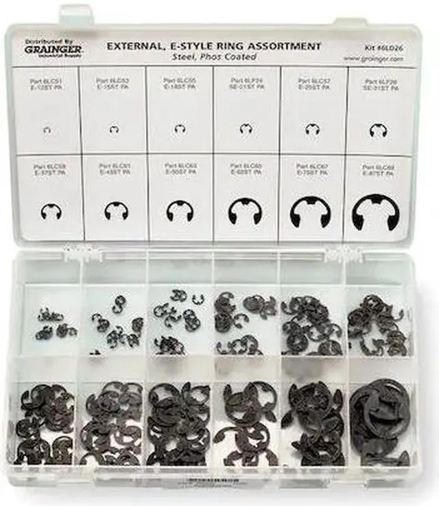 ZORO SELECT RCE1287STPA External Retaining Ring Assortment, Steel, Phosphate