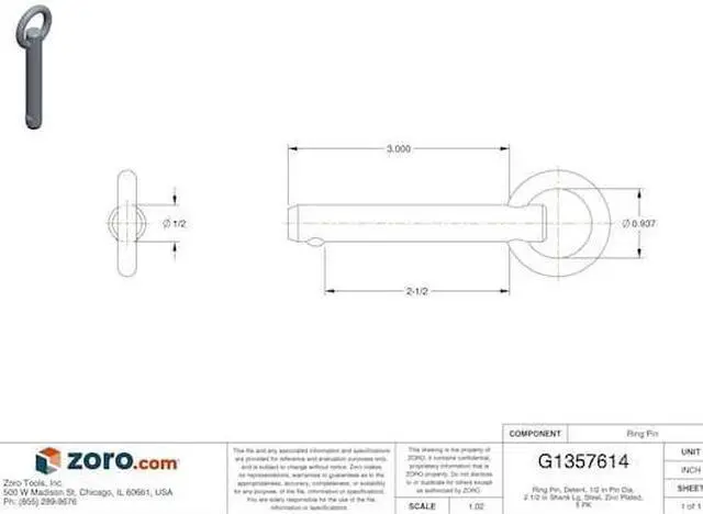 Ring Pin, 0.5 in dia, 2.5 in L, Steel, PK5, Pin Diameter 1/2 in, Shank Diameter 1/2 in, Shank Length 2 1/2 in, Pin Type Detent, Material Steel, Material Grade/Class Grade 1144, Finish Zinc Plated, Usable Length 2 1/2 in, Product Type Hitch Pins, System of Measurement Inch, Manufacturer Location Globally Sourced, Includes -, Package Quantity 5. This item has been restricted from sale in the following state (s): []