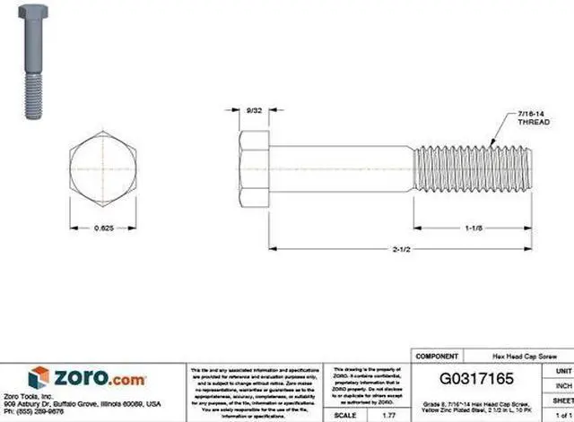 - Thread Direction & Size: It features right-hand thread direction that tightens clockwise along with a thread size of 7/16"-14; these specifications suggest compatibility with corresponding nuts or holes