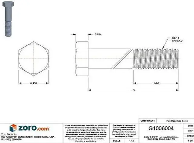 California Proposition 65: This product contains a chemical known to the State of California to cause birth defects or other reproductive harm. Hex Head Cap Screw, System of Measurement Inch, Basic Material Steel, Material Grade Grade 8, Fastener Finish Plain, Dia. /Thread Size 5/8 In. -11, Fastener Length 5 in, Fastener Thread Direction Right Hand, Fastener Thread Type UNC (Coarse), Fastener Thread Style Partially Threaded, Fastener Industry Standards ASME B 18.2. 1, Head Type Hex, Min. Thread Length 1 1/2 in, Head Height 25/64 in, Head Width 15/16 in, Package Quantity 5. This item has been restricted from sale in the following state (s): []