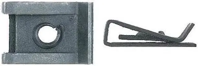 Spring Nut, Nut Shape U Style Spring Nut, Nut Finish Phosphate, Nut Material Steel, Minimum Panel Thickness 0.02 in, Maximum Panel Thickness 0.15 in, Overall Width 0.63 in, Overall Length 0.88 in, Hole Center to Outside Edge 0.34 in, System of Measurement Inch, Thread Size #10, Cage Finish Phosphate, Cage Material Steel, Clip-On Style U, Color Black, Head Height 0.31 in, Package Quantity 25. This item has been restricted from sale in the following state (s): []