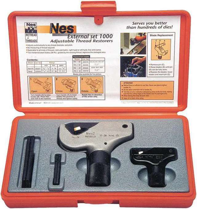 External Thread Repair Set, Size External 5/32 In. to 1-1/2 In., Thread Type Metric or UNC, Number of Pieces 2, Restoring Threads, Includes Nes1A, Nes2. This item has been restricted from sale in the following state (s): []