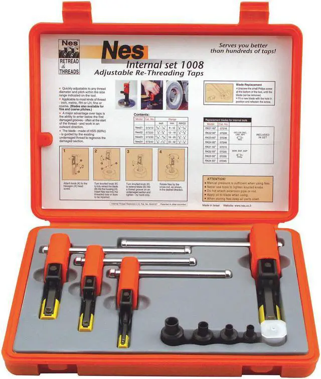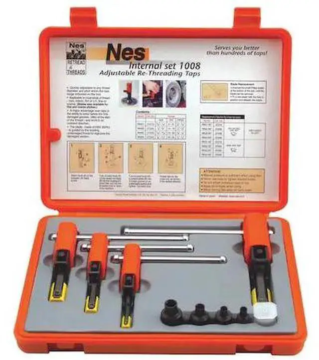 Internal Thread Repair Set, Size Internal 5/16 In. to 1-1/4 In., Thread Type Metric or UNC, Number of Pieces 4, Restoring Threads, Includes Nes21, Nes22, Nes23, Nes24. This item has been restricted from sale in the following state (s): []