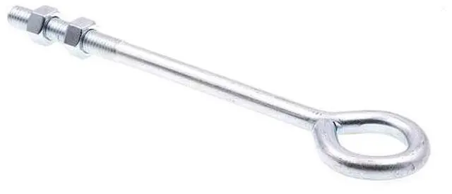 Size: 1/2 inch-13 X 10 inchIncludes two hex nutsFeatures a closed loop or "eye" at one end and machine screw threads at the opposite endIn some applications a washer may possibly be neededSuggested that washers are used between nuts and postThread Type: Coarse, Thread Class: 1A, Point Style: BluntSpecification(s) Met: ASME B1.1