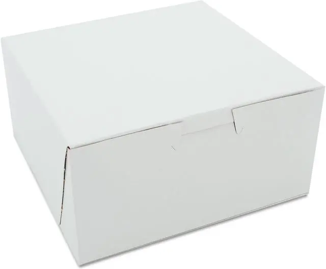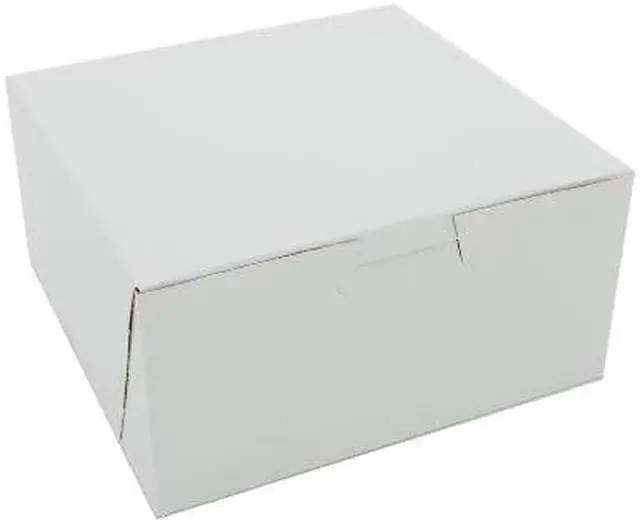 Celebrate every occasion with this beautiful bakery box! Made from high quality, clay-coated Kraft paperboard, it is perfect for cakes, pastries, pies and cupcakes. Each sturdy, one-piece box ships flat, but assembles easily into a folded carton with lock-corner closures and a tuck top to secure contents. Approved for commercial composting by Cedar Grove Composting. Food Container Type: Bakery Box; Material(s): Clay-Coated Kraft; Color(s): White; Depth: 6". Includes 250 per case.