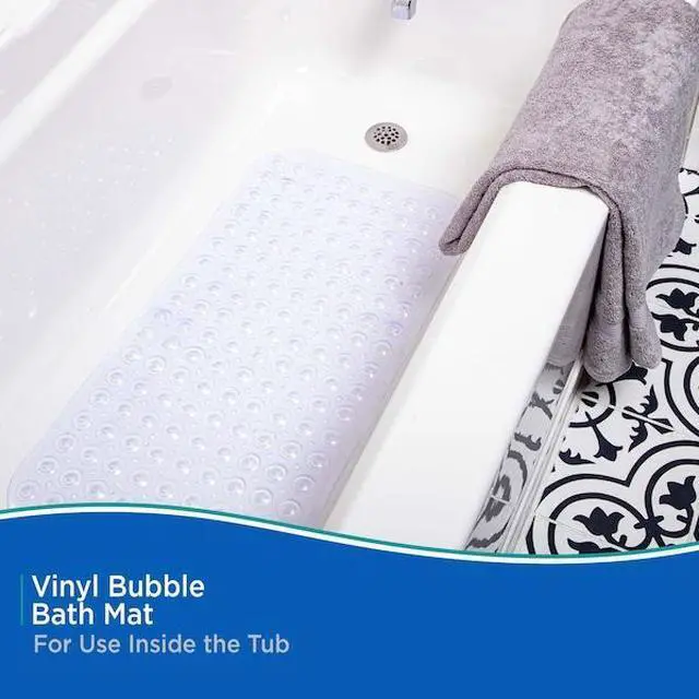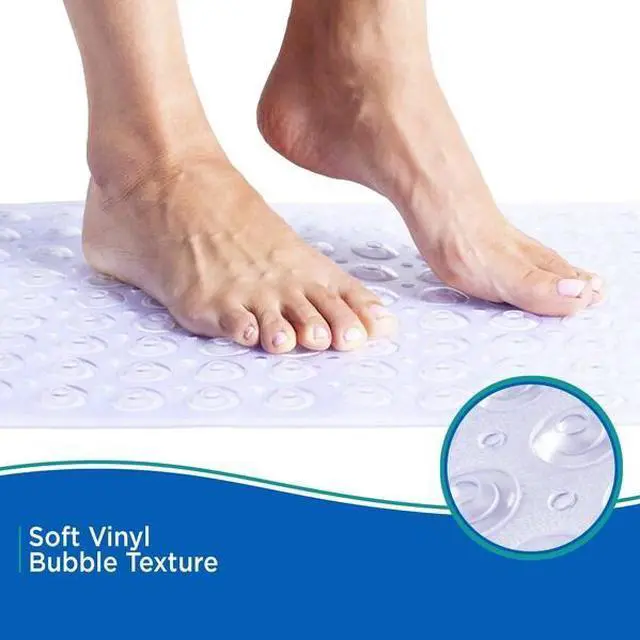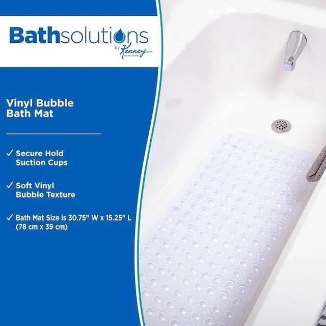 Your feet will love the soft, textured feel of this bath mat. Kenney's Bubbles Vinyl bath mat provides added comfort in your shower and helps prevent slips and falls. Suction cups secure the mat in place.
