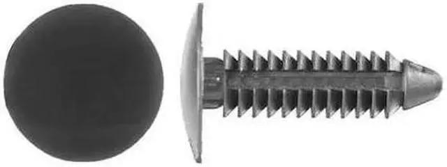 Nylon Retainers, Dome, 1 1/16 In. L, PK50, System of Measurement Inch, Shank Diameter 0.25 in, Overall Length 1 3/16 in, Shank Type Ribbed, Material Nylon, Head Type Dome, Head Height 0.125 in, Head Diameter 25/32 in, Color Black, Maximum Hole Diameter 0.25 in, Maximum Material Thickness 4/5 in, Product Type Push-In Rivet, Minimum Material Thickness 35/64 in, Manufacturer Location Globally Sourced, Body Length 1 1/16 in, Material Grade/Class Ungraded, Package Quantity 50. This item has been restricted from sale in the following state (s): []