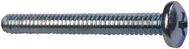 California Proposition 65: This product contains a chemical known to the State of California to cause birth defects or other reproductive harm. Machine Screw, Head Type Round, Material Steel, Finish Zinc-Plated, Drive Combination Slotted/Phillips, Thread Size #12-24, Fastener Length 5/8 in, Head Width 0.412 in, Head Height 0.139 in, Drive Size #3, Tensile Strength 60, 000 psi, Dimensional Standards ASME B 18.6. 3, Pack Size Small, Type Machine Screw, Maximum Head Width 13/32 in, Minimum Head Width Not Applicable, Maximum Head Height 9/64 in, Minimum Head Height Not Applicable, System of Measurement Inch, Thread Type Coarse