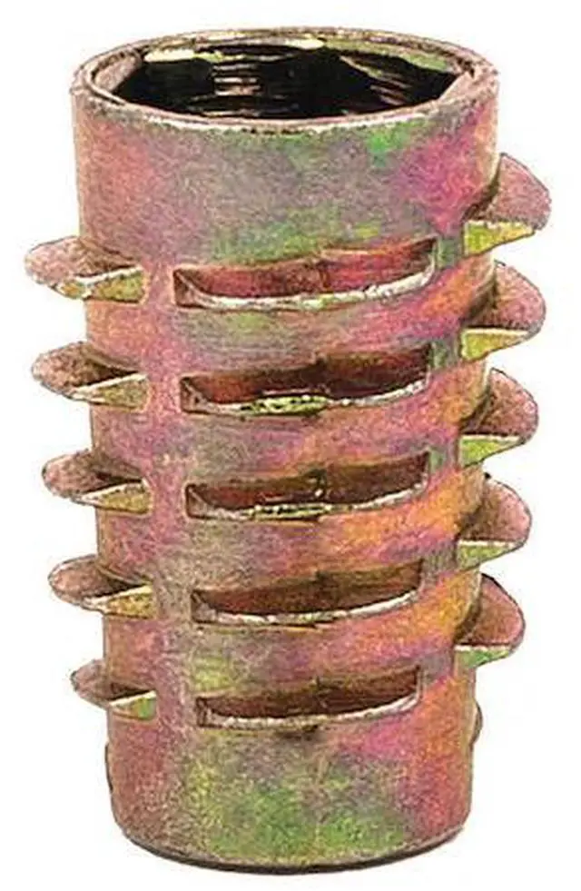 Hex Drive Threaded Insert, System of Measurement Metric, Insert Diameter 14.3 mm, Overall Length 20 mm, Internal Thread Size M8- 1.25, Thread Direction Right Hand, Thread Type Coarse, Material Zinc Alloy, Material Grade/Class Not Graded, Finish Plain, Drive Size M8, Drill Bit Size 7/16 in, Compatible Material Wood, Minimum Material Thickness 31 3/4 mm, Maximum Hole Diameter 11.1252 mm, Flange Style Flush, Manufacturer Location Globally Sourced, Compatible with Grainger Part Number 4ZY12