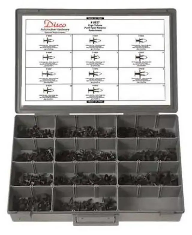 Ergo Tuflok Retainer Assortment, Number of Pieces 280, Number of Sizes 11, Product Type Push-In Rivet Assortment, Material Grade/Class Ungraded, Manufacturer Location Made in USA*, Made in North America Yes. This item has been restricted from sale in the following state (s): []