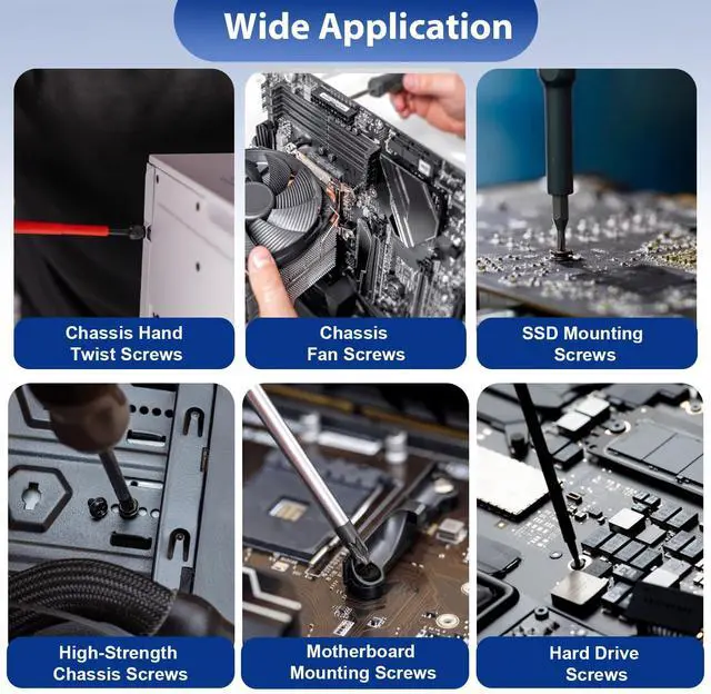 Professional-Grade ReliabilityTrusted by enthusiasts and pros. The comprehensive selection of pc screws, motherboard mounting screws, and ssd mounting screws made from premium materials to ensure secure installations for motherboards, SSDs, hard drives, and case fans. It's an essential computer building kit that eliminates hardware hassles, ensuring stable, long-term performance for any build or fix.