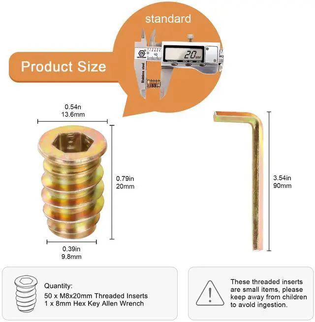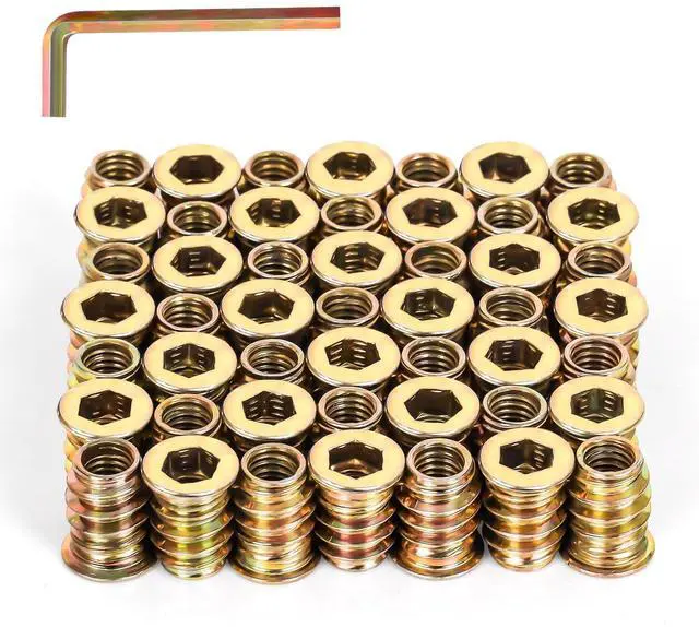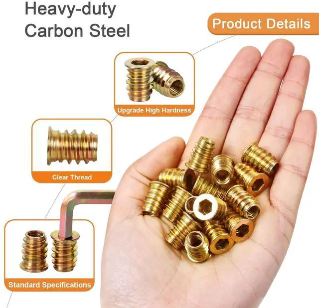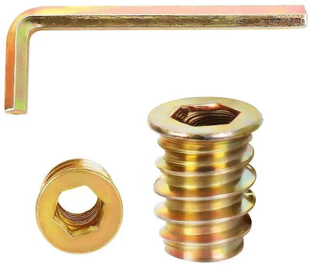 The Wood Nut Inserts are manufactured by carbon steel die-casting or forging process; They have internal and external threads; The internal thread is mainly responsible for self-locking wood; The Insert Nuts are mainly used for implanting wood material, increasing the way of wood thread locking, suitable for hardwood, such as solid wood, and have a good effect in the combination of high-end furniture.