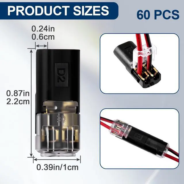 Size & Quantity: You will get 60pcs black quick clip fasteners wire connectors, compatible for wire of 18-22AWG, suitable for both rigid and flexible wires. Enough quantities can meet your daily use and DIY craft needs.
