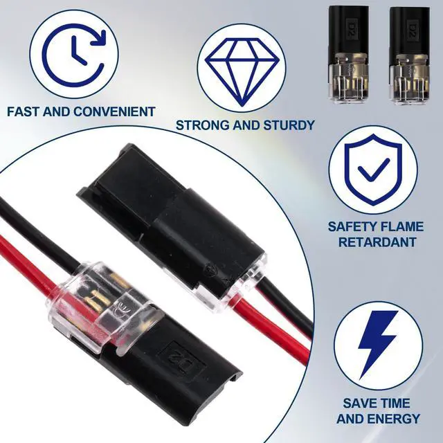 Quick Use Design: The wire quick connector features snap-on design, easy to apply without other tools like drill, glue or pliers. Just insert the wire and align the positive and negative poles. Finally close the buckle.