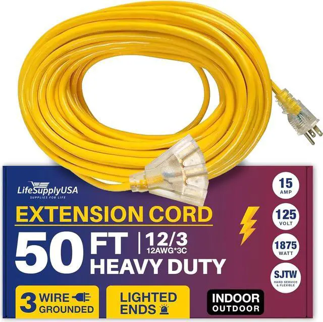 12/3 50 ft. Wire Gauge 3 OUTLET Tri-Source SJT Indoor Outdoor Vinyl LIGHTED Electric Extension Cord