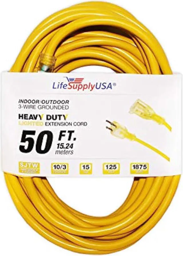 10/3 50ft SJTW Lighted End 15 AMP, 125V, 1875 Watt Heavy Duty Extension Cord (50 feet)