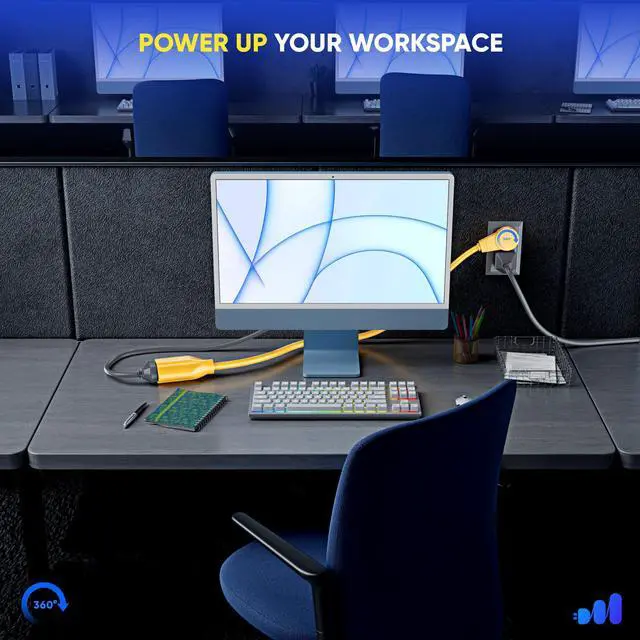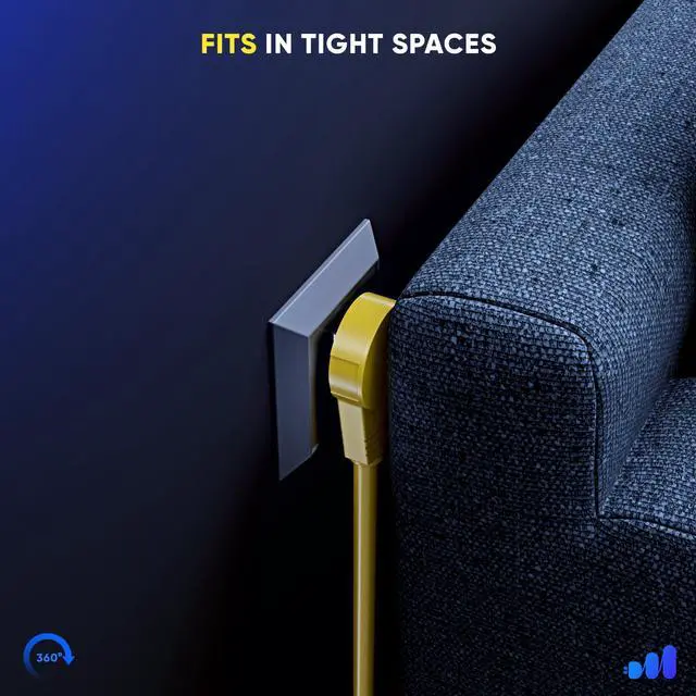 Maximm 360 Rotating Flat Plug Extension Cord/Wire The rotating extension cords are unique for their sleek and adaptable design. They are versatile due to its rotating plug providing angular flexibility to a full 360 degrees, the prongs rotate in the plug so you can aim the cord in any direction you wish without blocking the other outlets. Clutter ControlMaximm Solves those power problems with ease using the Flat Plug Rotating Extension Cord. It has a space-saving design to eliminate bulky or awkward cords. Since it hugs the wall nicely and extends only a half an inch from the wall bending to a 90-degree angle - so it doesn't poke into adjacent objects - you can place your desk, couch, bookshelf etc, right up against the wall freeing up some space.