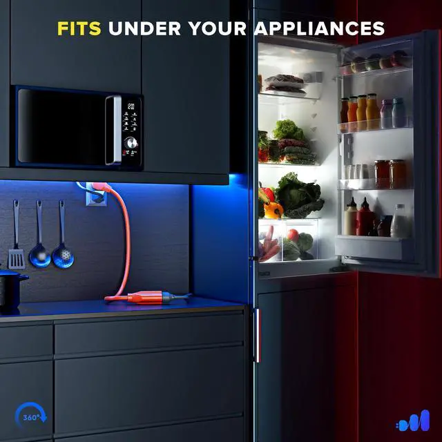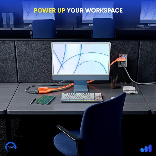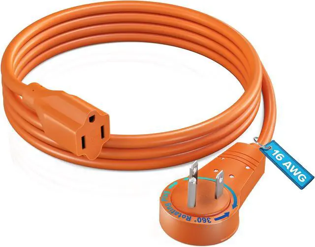 Maximm 360° Rotating Flat Plug Extension Cord/Wire The rotating extension cords are unique for their sleek and adaptable design. They are versatile due to its rotating plug providing angular flexibility to a full 360 degrees, the prongs rotate in the plug so you can aim the cord in any direction you wish without blocking the other outlets. Clutter ControlMaximm Solves those power problems with ease using the Flat Plug Rotating Extension Cord. It has a space-saving design to eliminate bulky or awkward cords. Since it hugs the wall nicely and extends only a half an inch from the wall bending to a 90-degree angle - so it doesn't poke into adjacent objects - you can place your desk, couch, bookshelf etc, right up against the wall freeing up some space.