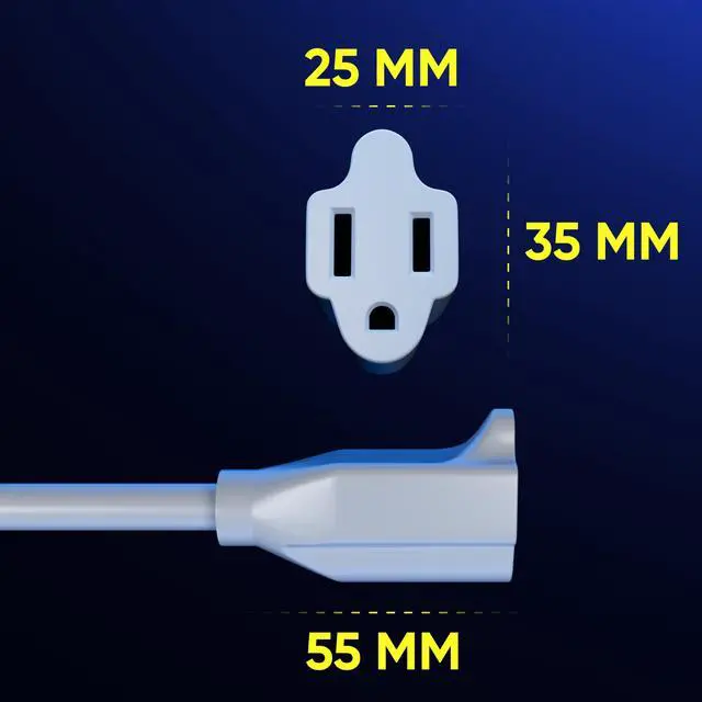 • FLAT PLUG: Designed for tight spaces like behind furniture, bookshelves, desks or anything which is close to the wall not allowing you to use the standard outlet.