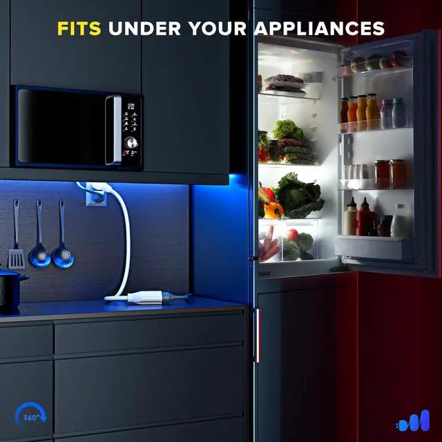 • SPACE SAVER: Convert your standard AC power cord to a slim rotating plug, providing angular flexibility. Plug into the top outlet and still have usage of the bottom outlet with this rotating cord.