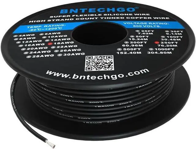 18 gauge silicone wire spool: Black total 250 feet.