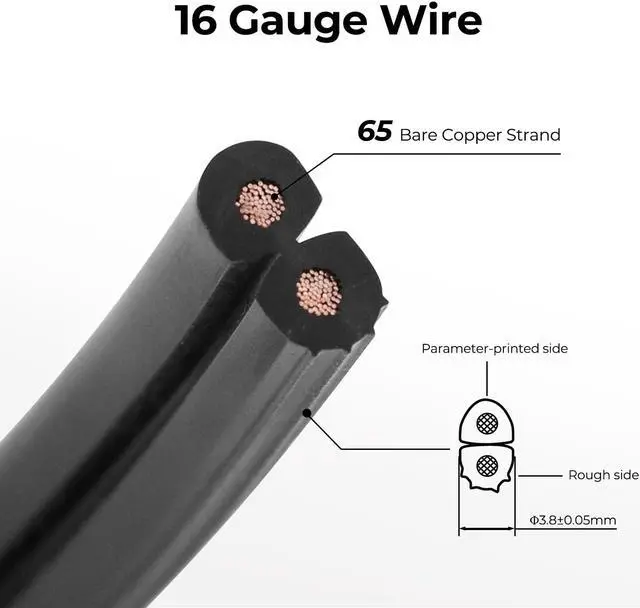 SPECIFICATION: 100-Feet 16AWG*2C (American wire gauge), Black, Maximum