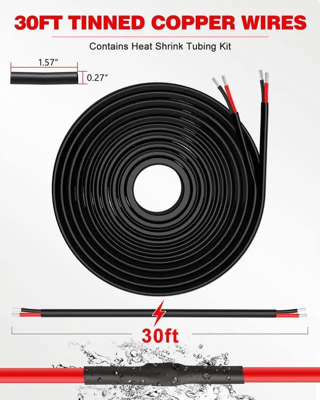 BUILT TO LAST: 2 Conductor 16 gauge wire is insulated with high-quality PVC, excellent chemical and oxidation resistance, 16 packs of heat-shrinkable tubes & 4 packs of cable ties. These tubes can Protect wires from damage caused by abrasion and moisture