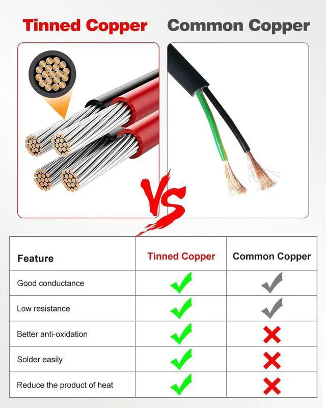 HIGHLY CONDUCTIVE: NAOEVO electrical wire uses high-precision oxygen-free tinned copper, The outside diameter of the Jacket is 3.1 mm Typ, and 26 strands of 0.24 mm tinned copper wire are inside each circuit, has lower resistance and higher conductivity