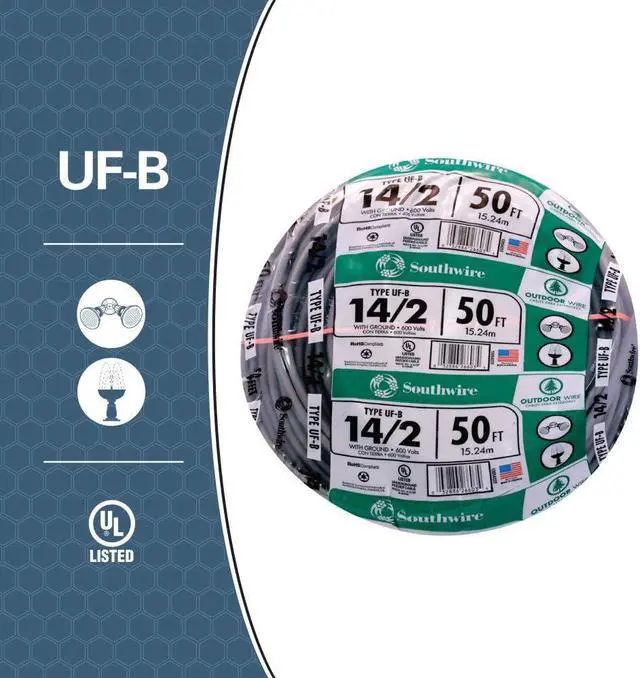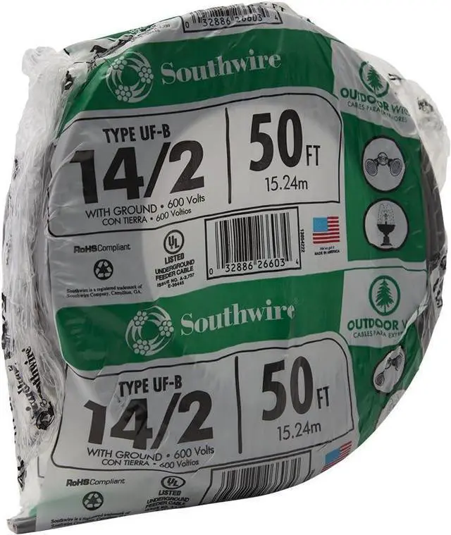 14 gauge, 2 conductors with ground, 50' per coil