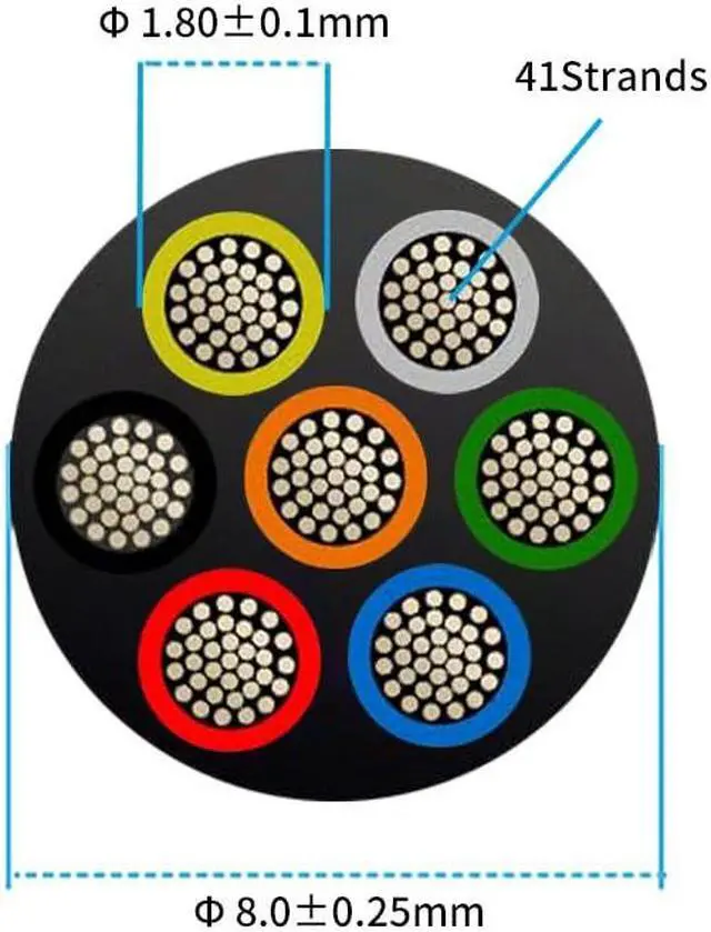 High ConductivityUL2464 18 gauge 7 conductor wire each cable contains 41 strands of 0.16 mm tinned copper wire. High purity Stranded oxygen-free copper with tin-plated, specification features high conductivity, low resistance, Ultra-Low eccentricity, better corrosion resistance, oxidation resistance and soft can be bent arbitrarily.