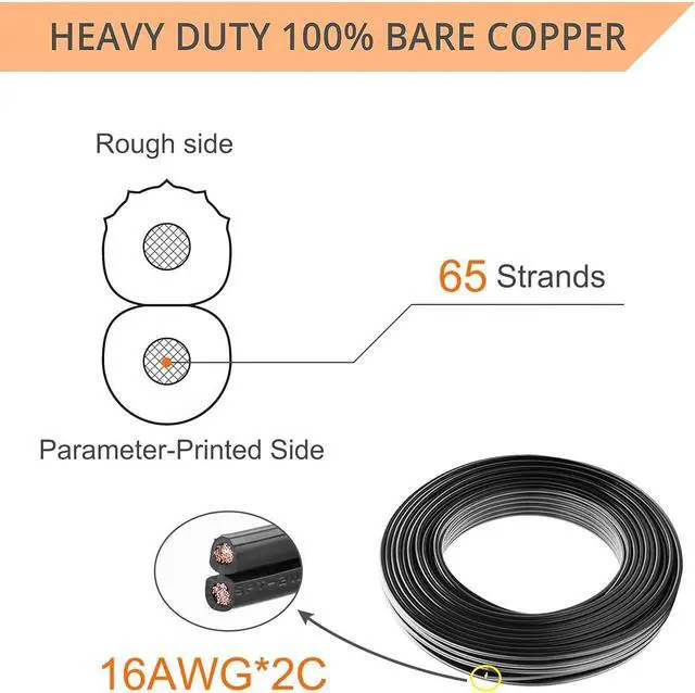 [EASY TO USE] - 100Feet 16AWG*2C, Black, Maximum