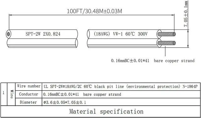 [SPECIFICATION] - 100-Feet 18AWG*2C (American wire gauge), Black, Maximum